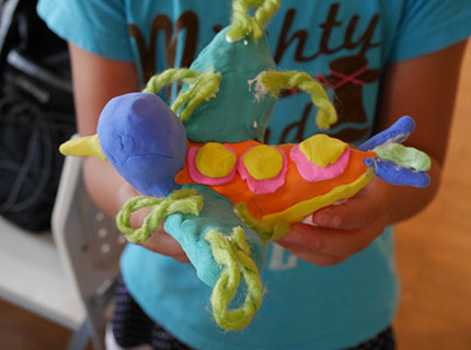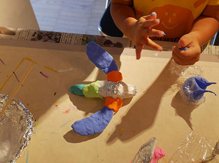 こども造形表現教室作品展2016でのワークショップの様子(2016年9月京都市勧業館みやこめっせにて)