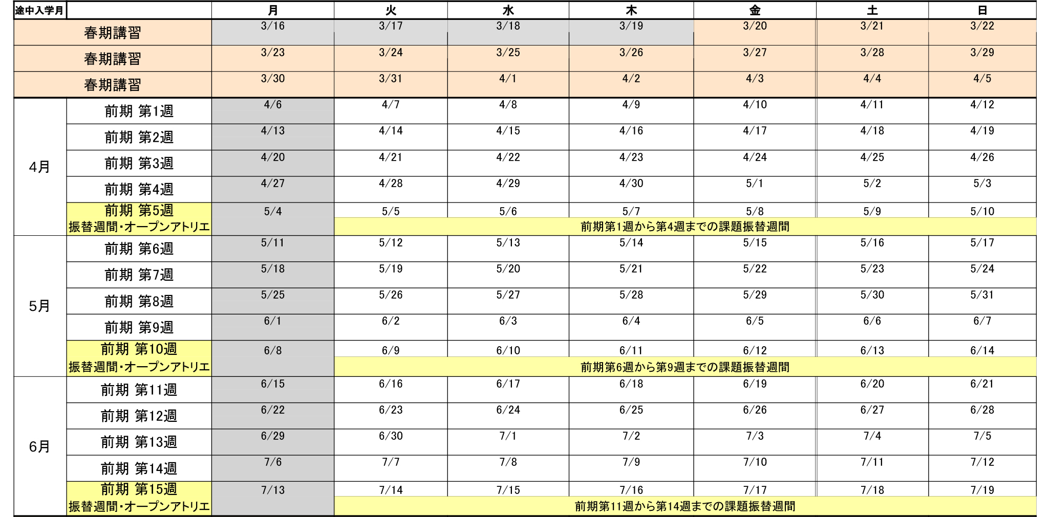 必須 通学初日をご記入ください。(前期第1週:4/7(火)スタート)
