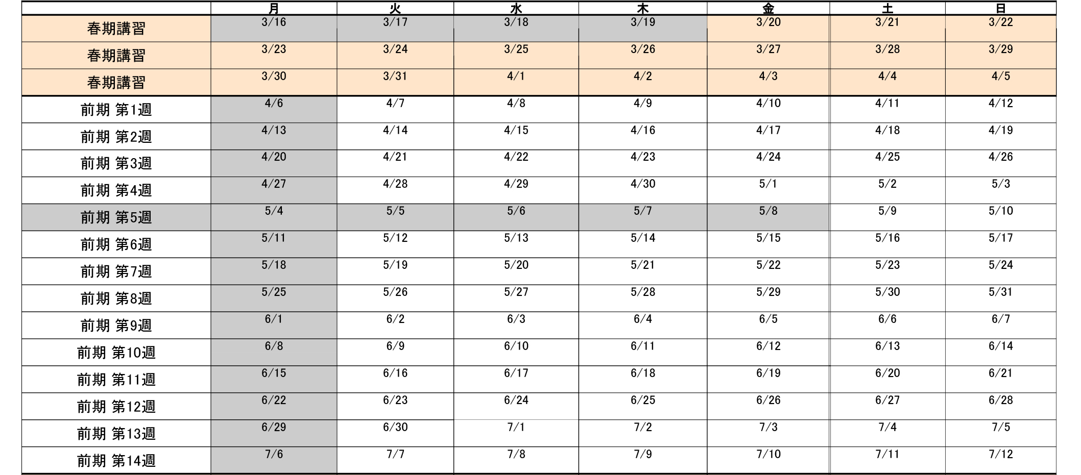 必須 通学初日をご記入ください。(前期第1週:4/7(火)スタート)