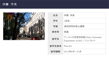 | ■留学先:アールト大学芸術学部(Aalto University Department of Art)/フィンランド | |